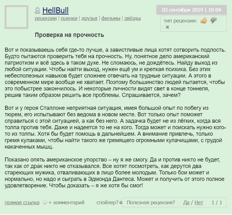 Второй фильм получил массу отрицательных отзывов от критиков. Существует немало крайне негативных рецензий, к которых создателей обвиняют в откровенной спекуляции на успехе первого фильма и продаже одного и того же под разными соусами. При этом это все тот же типичный американский боевик с хорошо поставленными боевыми сценами, добротной постановкой и известным актером в главной роли. Однако если зритель не является поклонником Сильвестра Сталлоне, картина ему скорее всего не понравится.